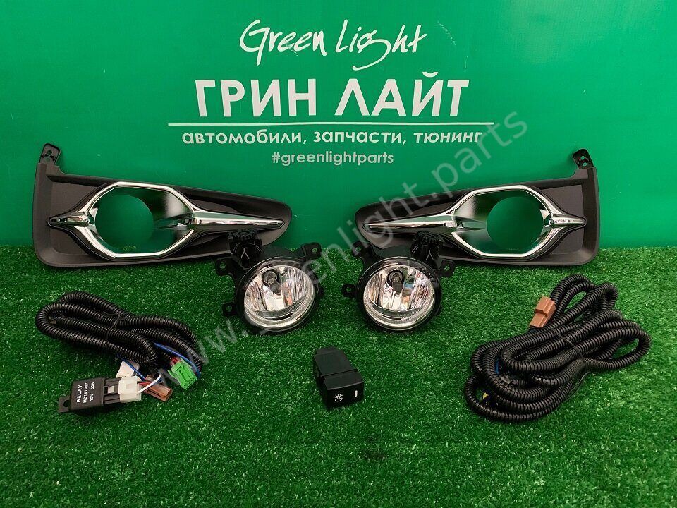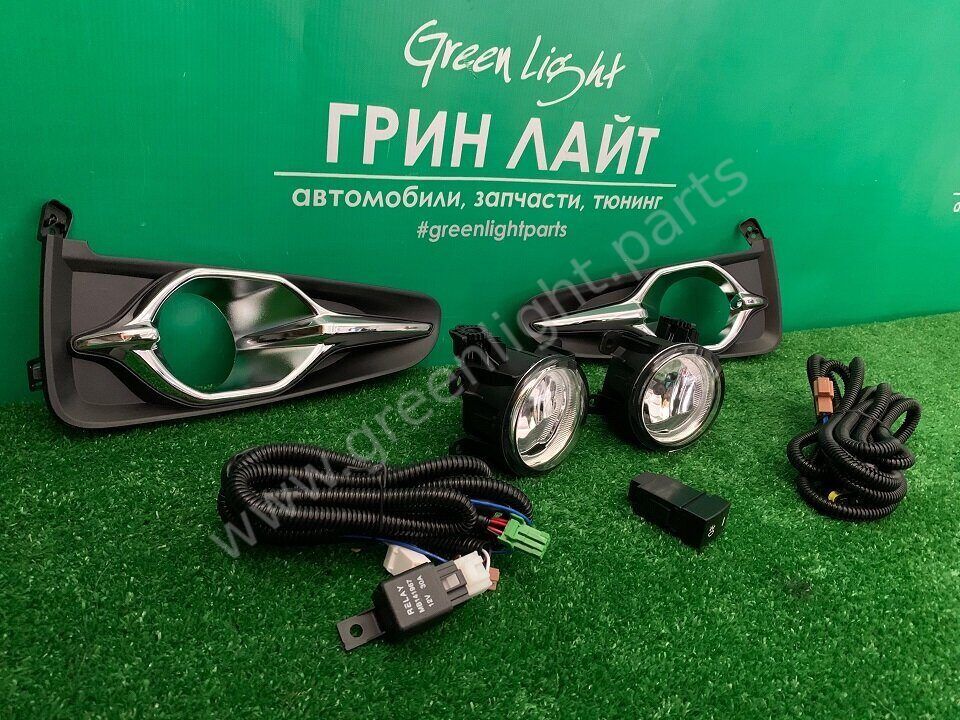В комплект входит: 2 туманки с креплениями, 2 декоративные рамки, проводка с реле, кнопка в салон
